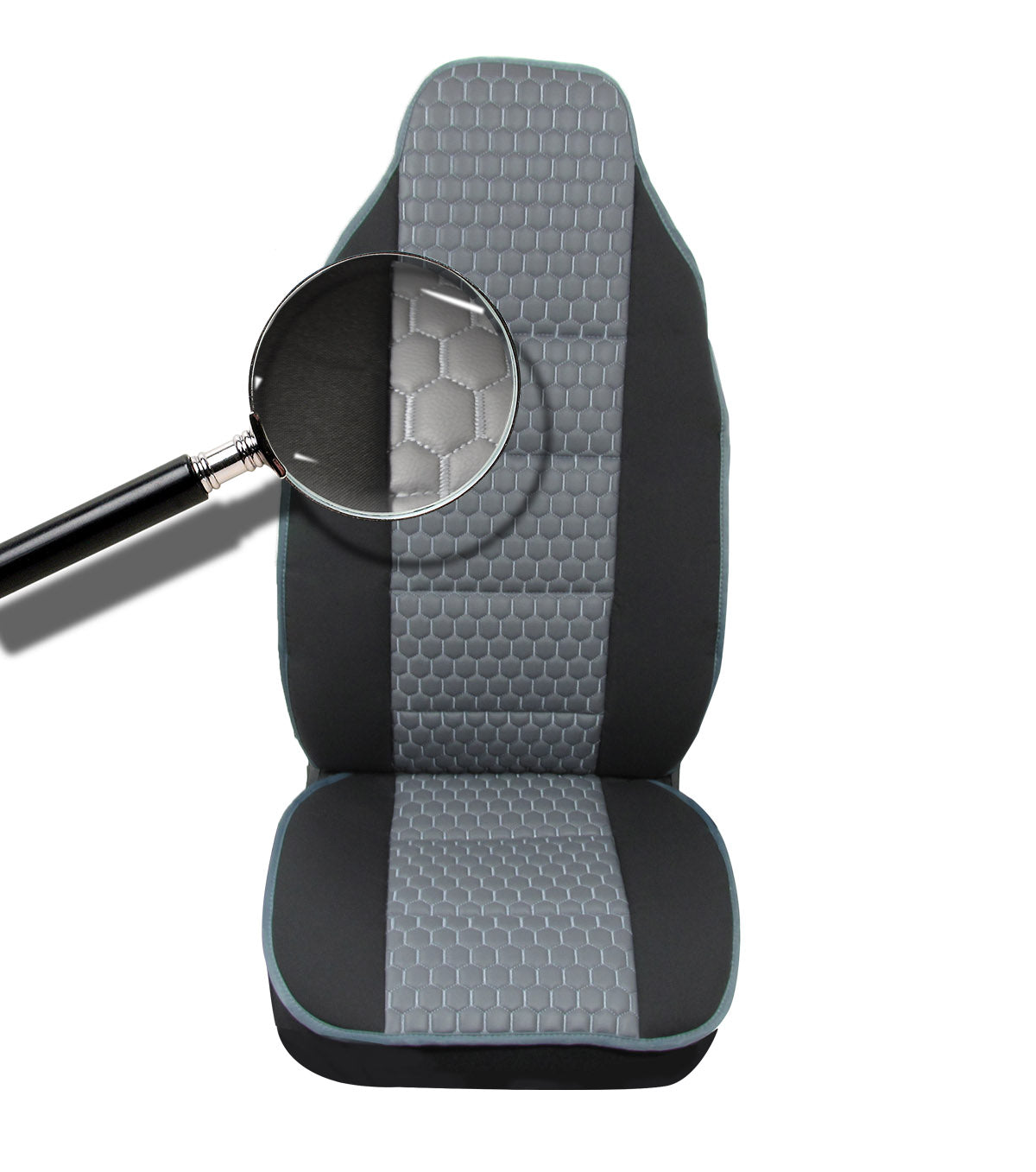 Универсален калъф за седалка на камион - релефен - еко кожа и текстил - Volvo, DAF, Man, Scania, Mercedes, Iveco - черно със сиво