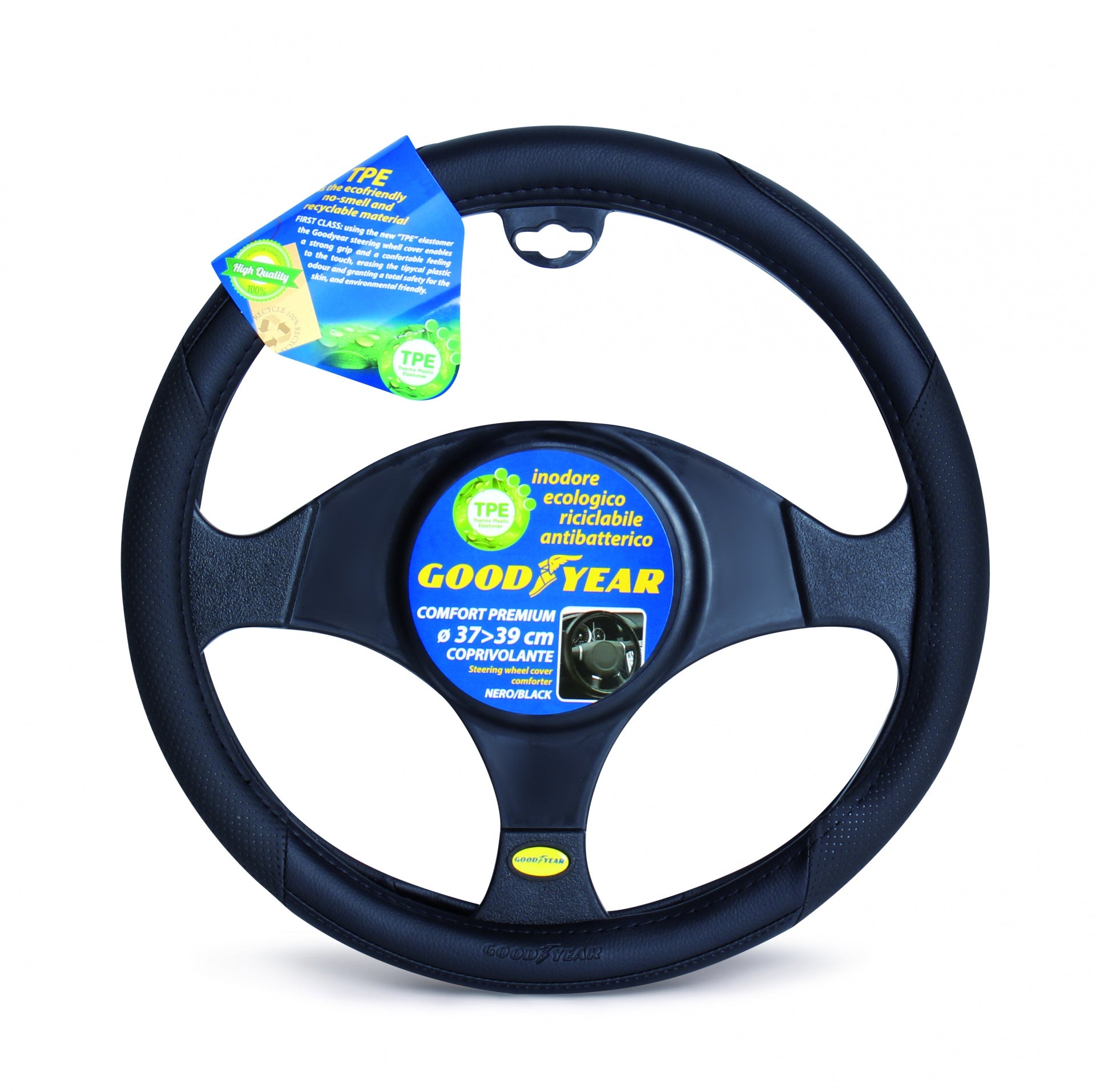 Универсален калъф за волан от еко кожа черен за автомобил бус ван 37-39 сm Goodyear Гудиър