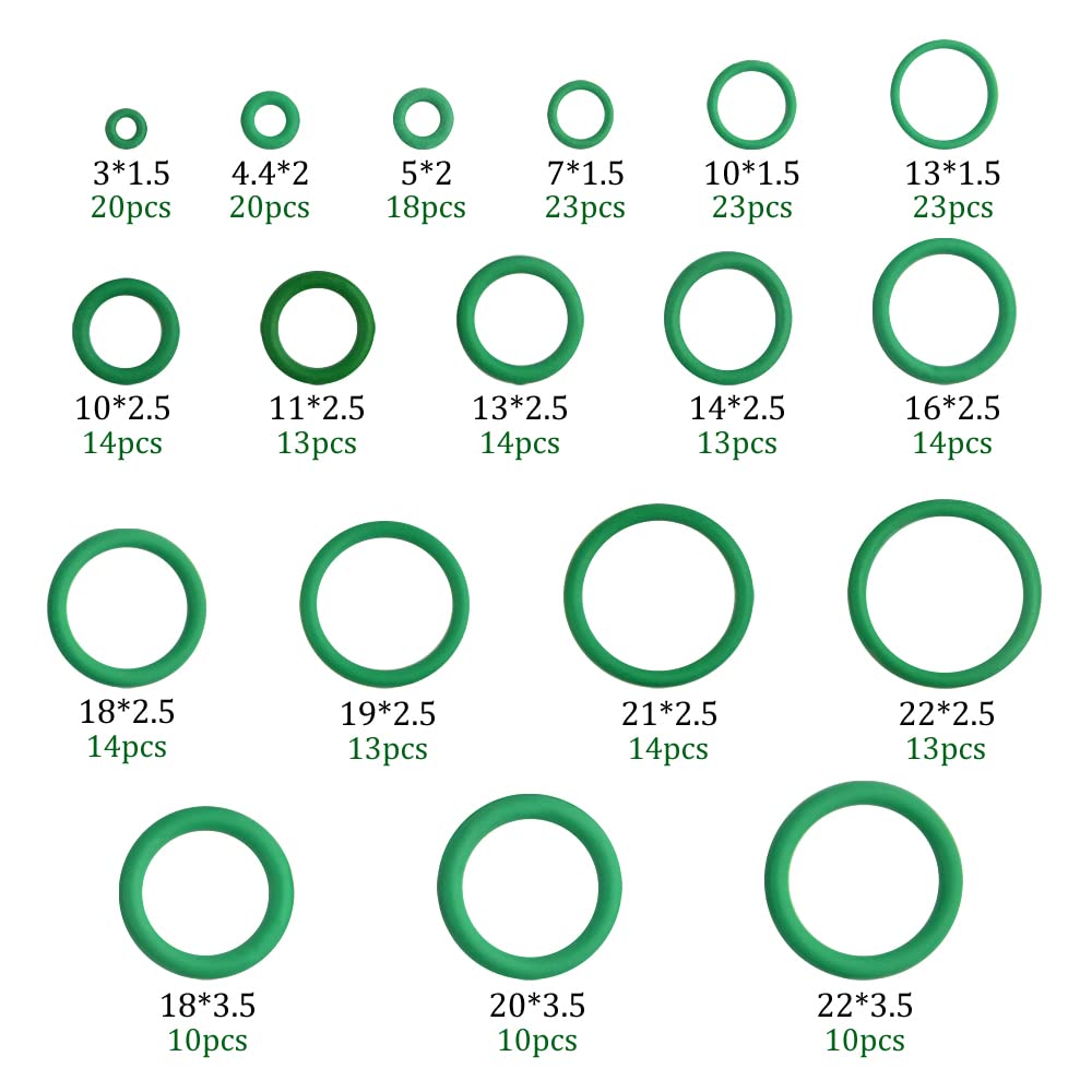 Комплекта съдържа следните размери О-пръстени: