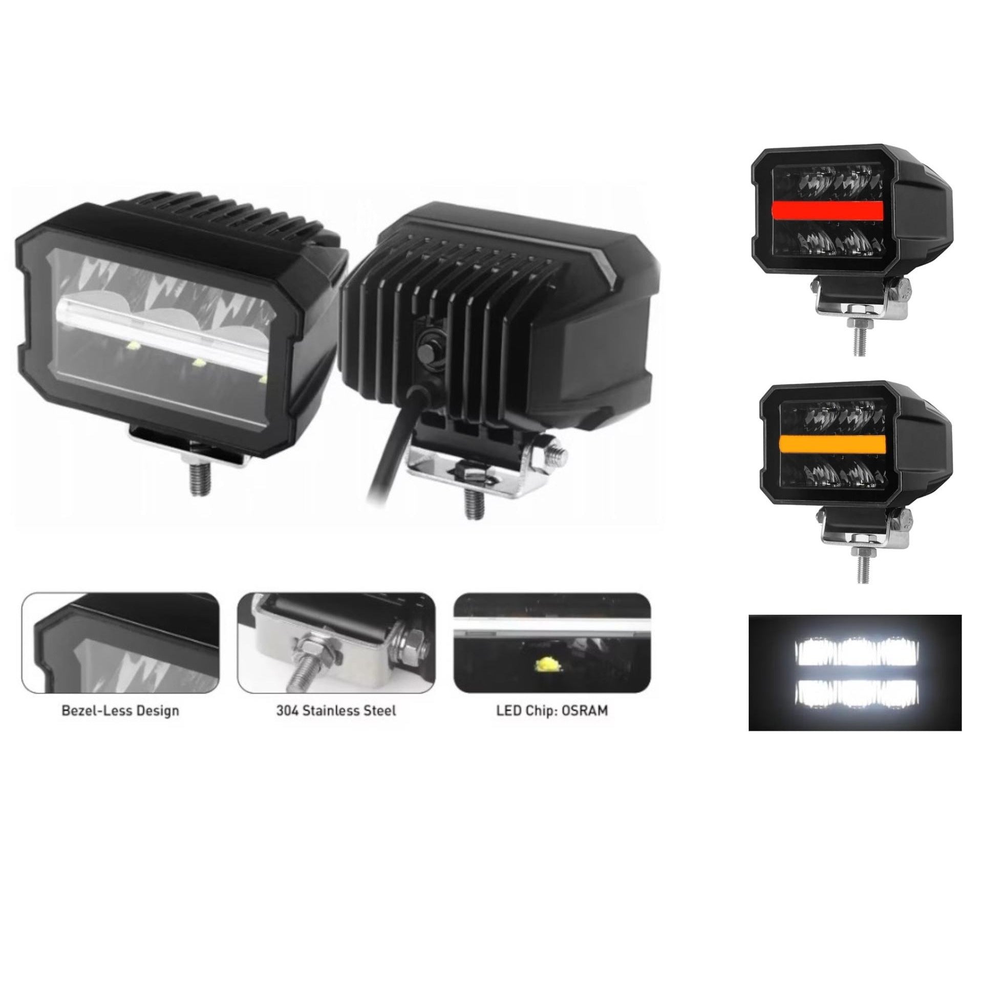 Универсален LED ЛЕД диоден халоген фар бяла светлина с оранжев червен габарит