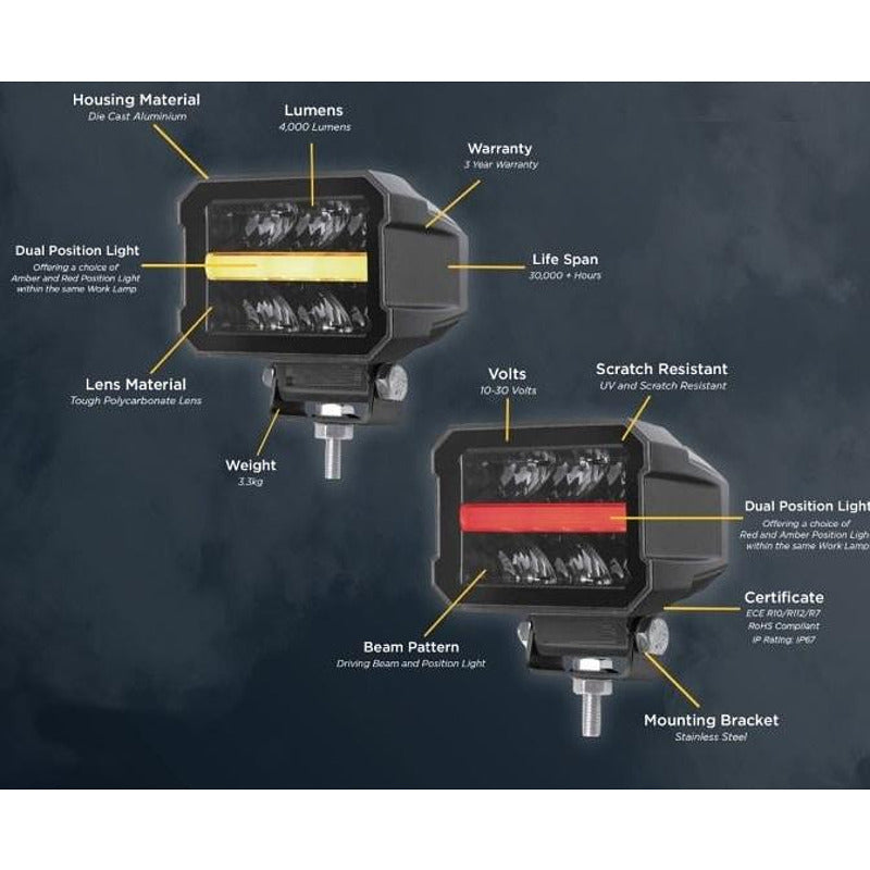 Универсален LED халоген/фар 11см с бяла основна светлина + габаритна в червен и оранжев цвят 12V/24V E-mark