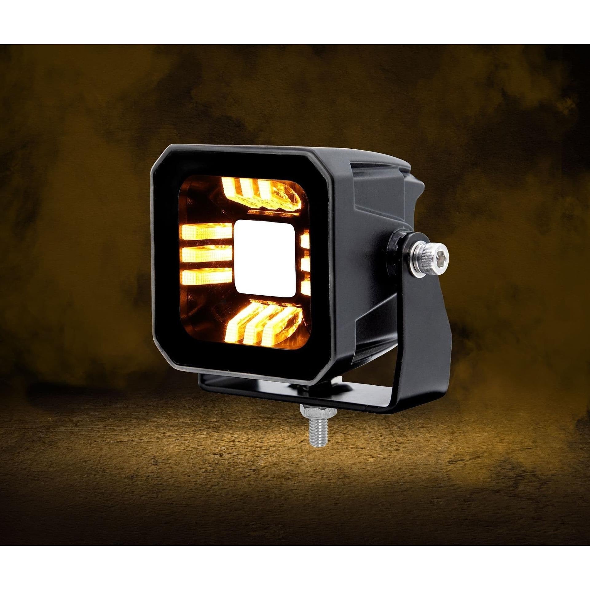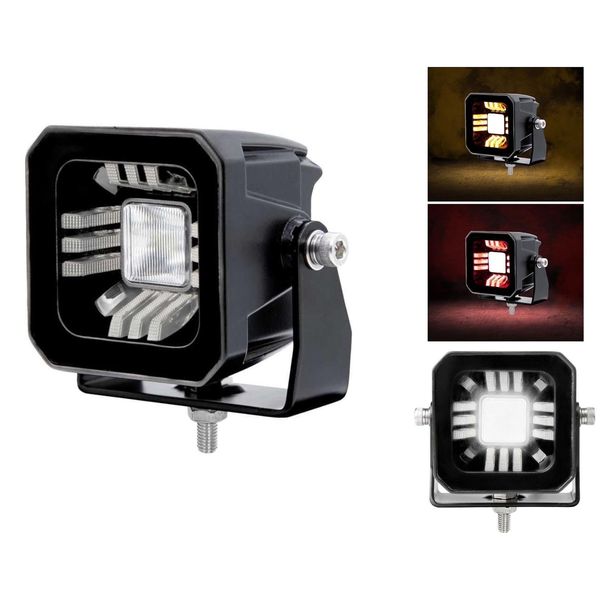 Универсален LED халоген/фар 7.3см с бяла основна светлина + габаритна в червен и оранжев цвят 12V/24V E-mark