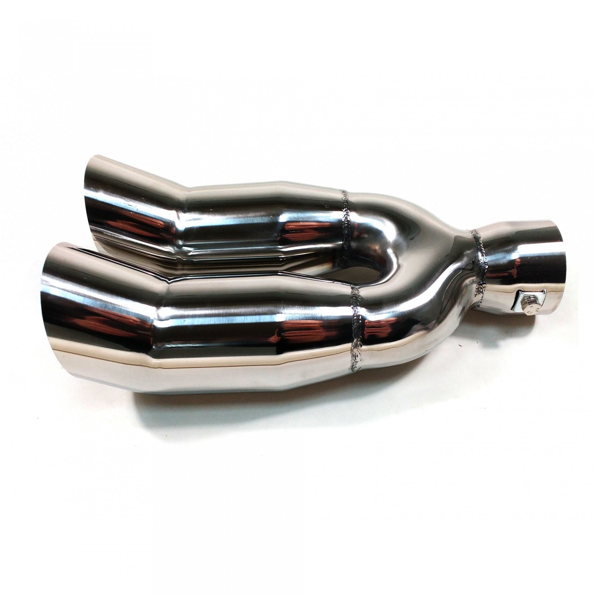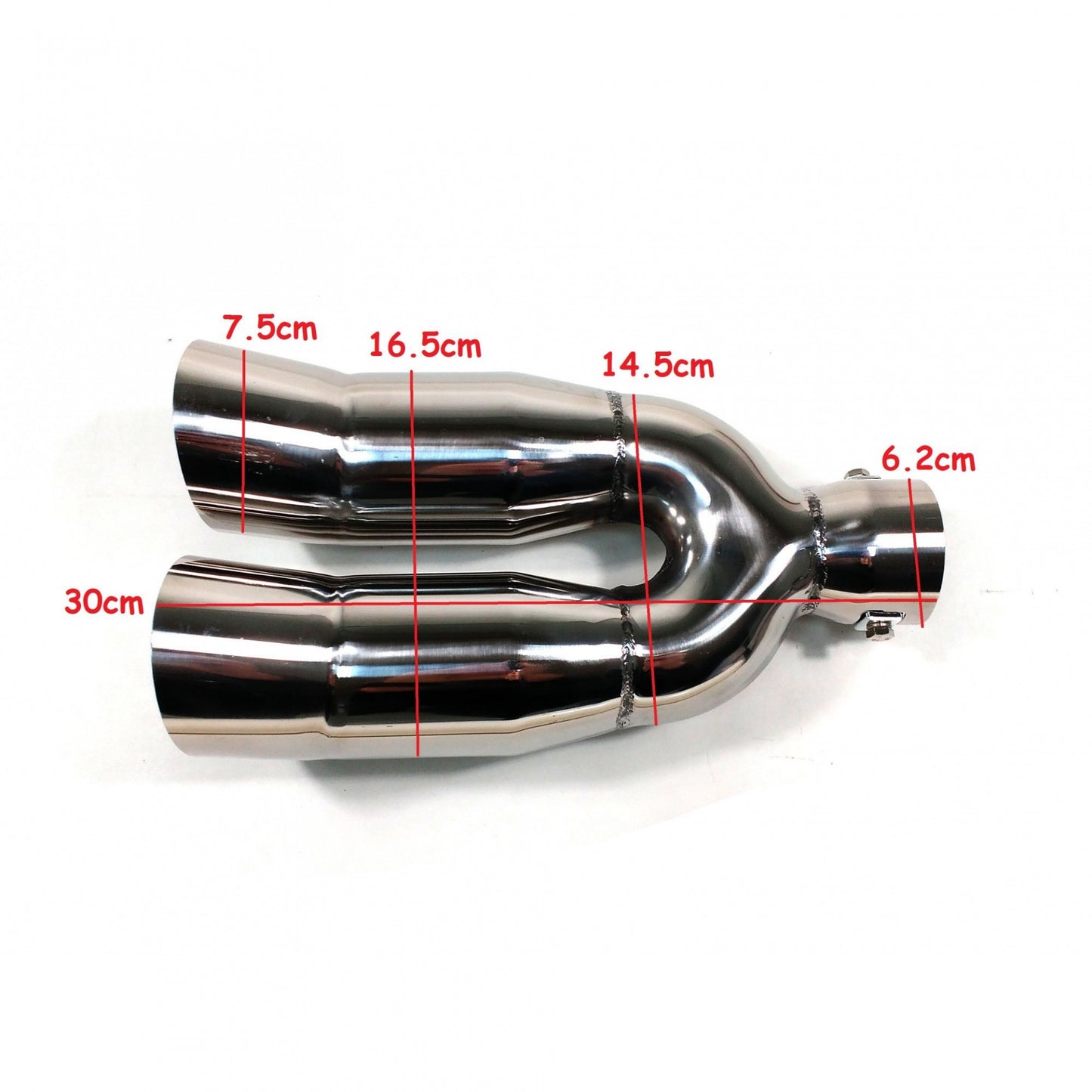 Нов универсален накрайник за ауспух Изработен от висококачествени материали, хромиран Лесен за монтиране (с включени фитинги) Лесен начин да подобрите външният вид на автомобила си Размери: Вход: 6.2см Изход (двоен): 6см Дължина: 23см Ширина: 16.3см Може да се монтира на ауспух с диаметър: 3.7см - 6см