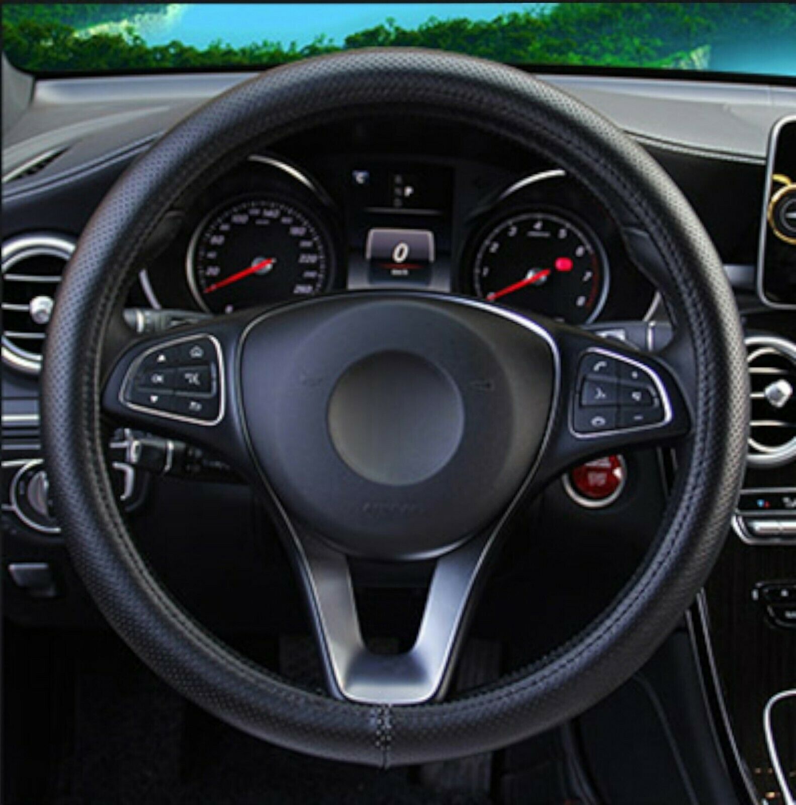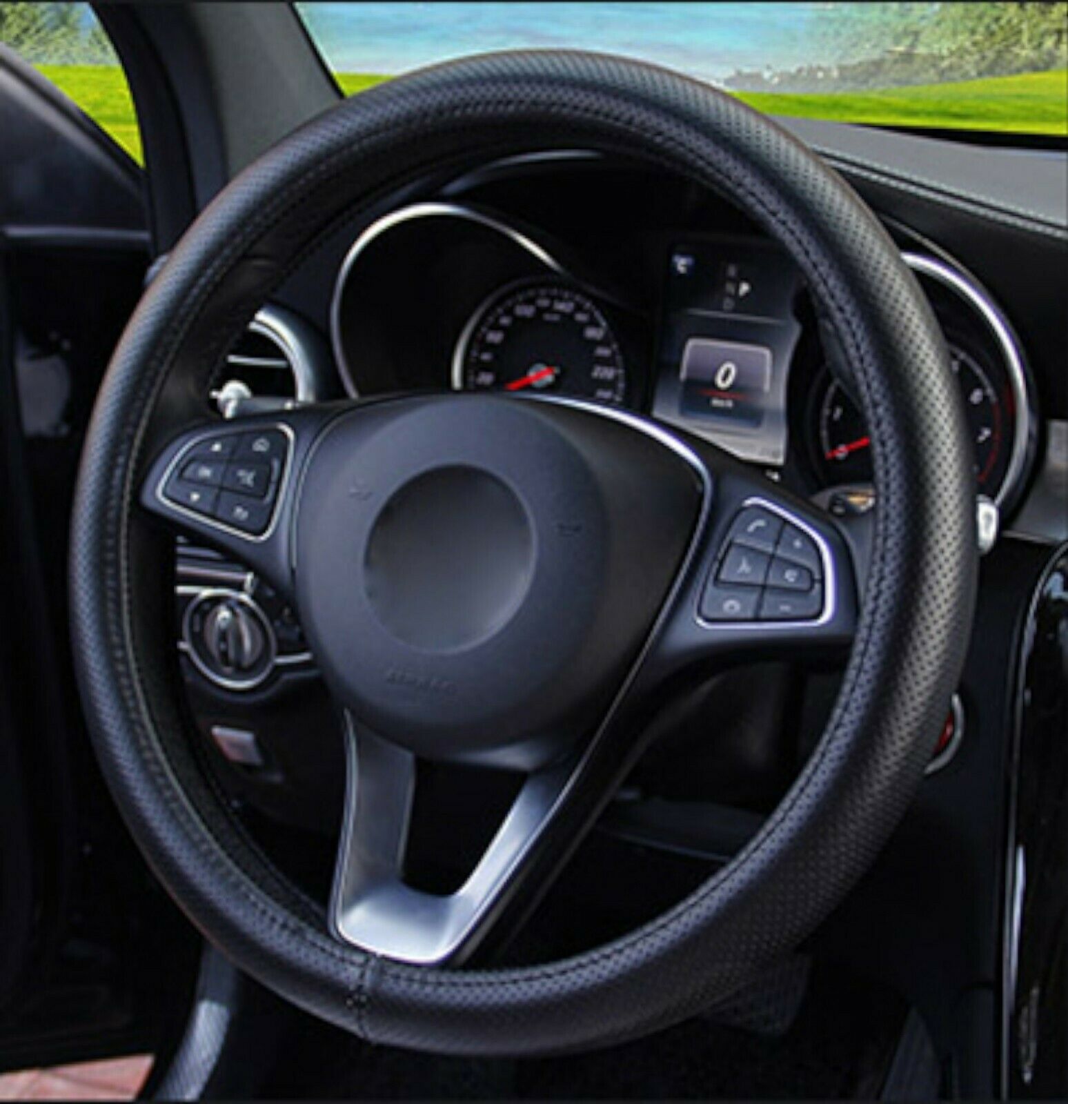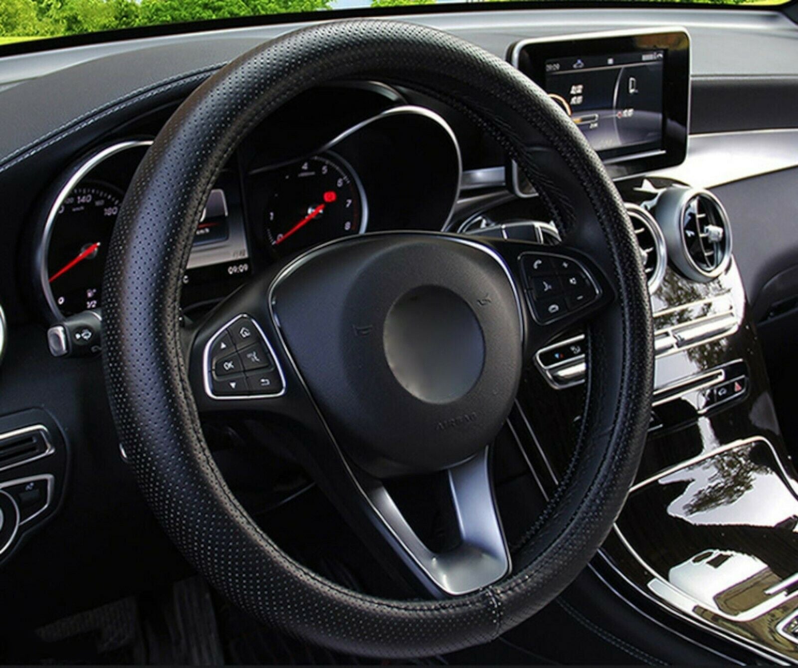 Универсален Перфориран Калъф За Волан, Черен цвят, Еко Кожа, За Автомобил Бус Джип SUV