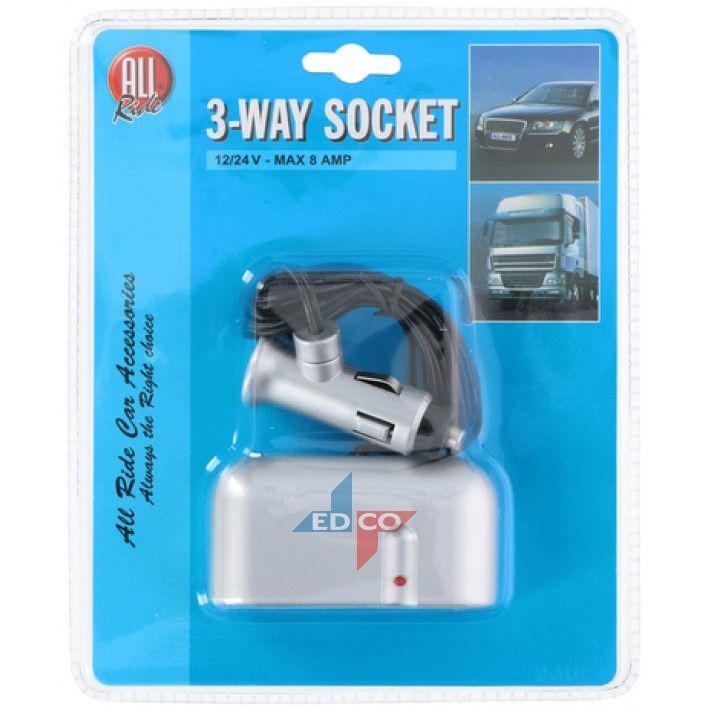 Универсален разклонител запалка с 3 входа Възможност за едновременно зареждане на три устройства Работно напрежение 12V - 24V 8 amp Размер: 220 x 40 x 150 mm