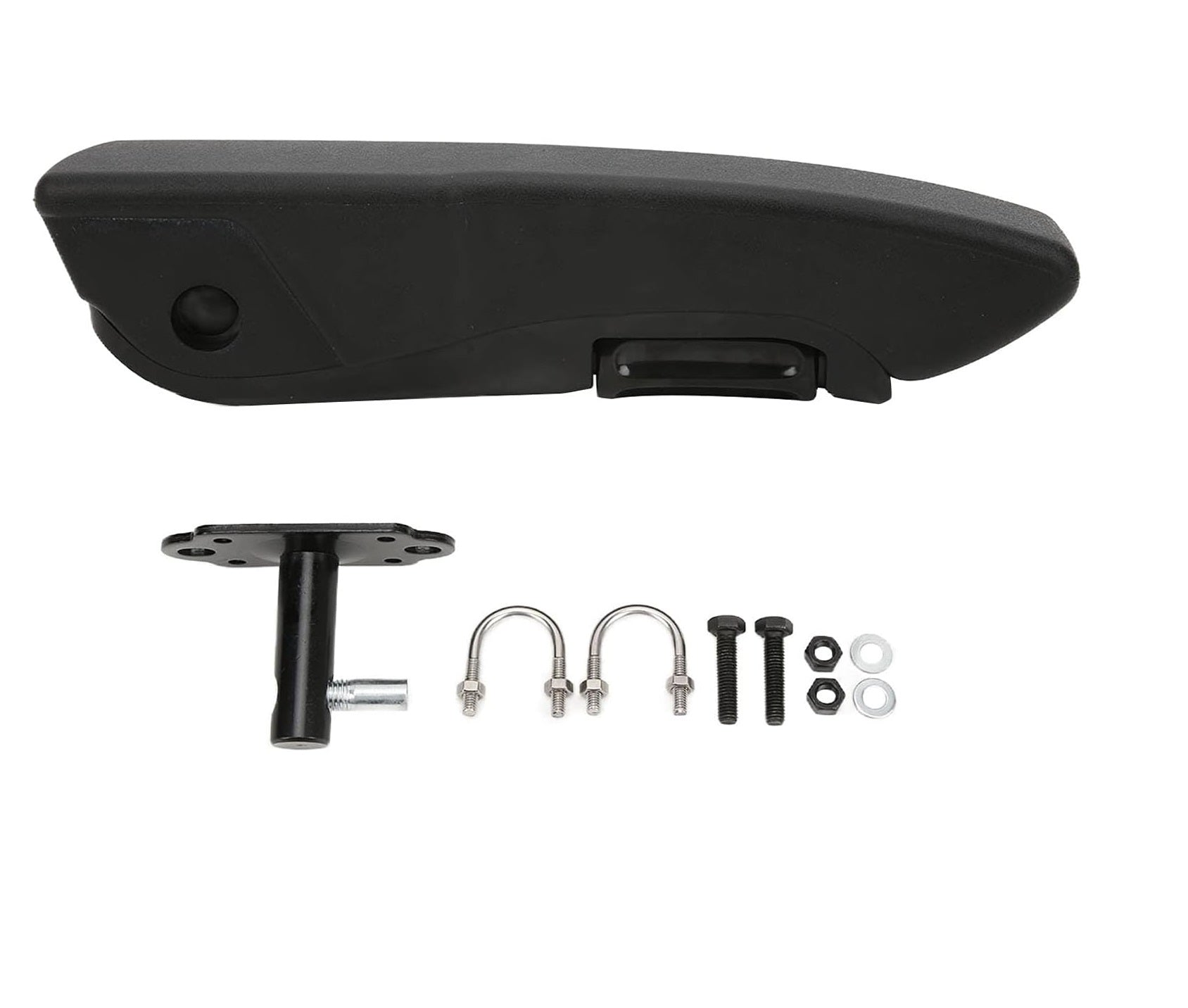 Универсален регулируем подлакътник за кола камион пикап кемпер. Предназначен за монтиране от лявата страна на седалката на превозното средство. Изключително удобен и функционален. Намалява умората и осигурява комфорт. Подлакътникът на седалката е изработен от PU, пластмаса и метал, устойчив на удари и износване. Удобен и регулируем(регулиране нагоре с 90 градуса и надолу с около 30 градуса). Цвят: черен Дължина: 38.5см