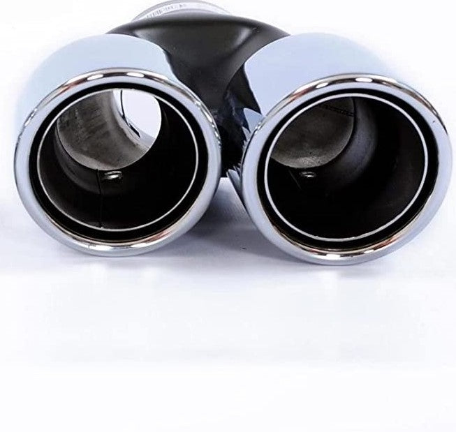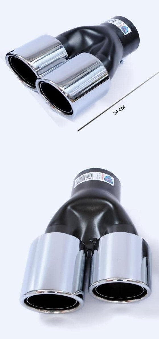 УНИВЕРСАЛНИ ХРОМИРАНИ ВИСОКОКАЧЕСТВЕНИ ДВОЙНИ НАКРАЙНИЦИ ЗА АУСПУХ ЗА АВТОМОБИЛ ЛЕСЕН МОНТАЖ !!! НЕРЪЖДАЕМА СТОМАНА РАЗМЕРИ: ОБЩА ДЪЛЖИНА- 26 CM ВХОД 7,5 CM. (МИН. ДИАМЕТЪР 5.8 CM, МАКС. ДИАМЕТЪР 7,5 СМ) ИЗХОД 17,5 Моля проверете за съответствие на размерите с вашия автомобил.