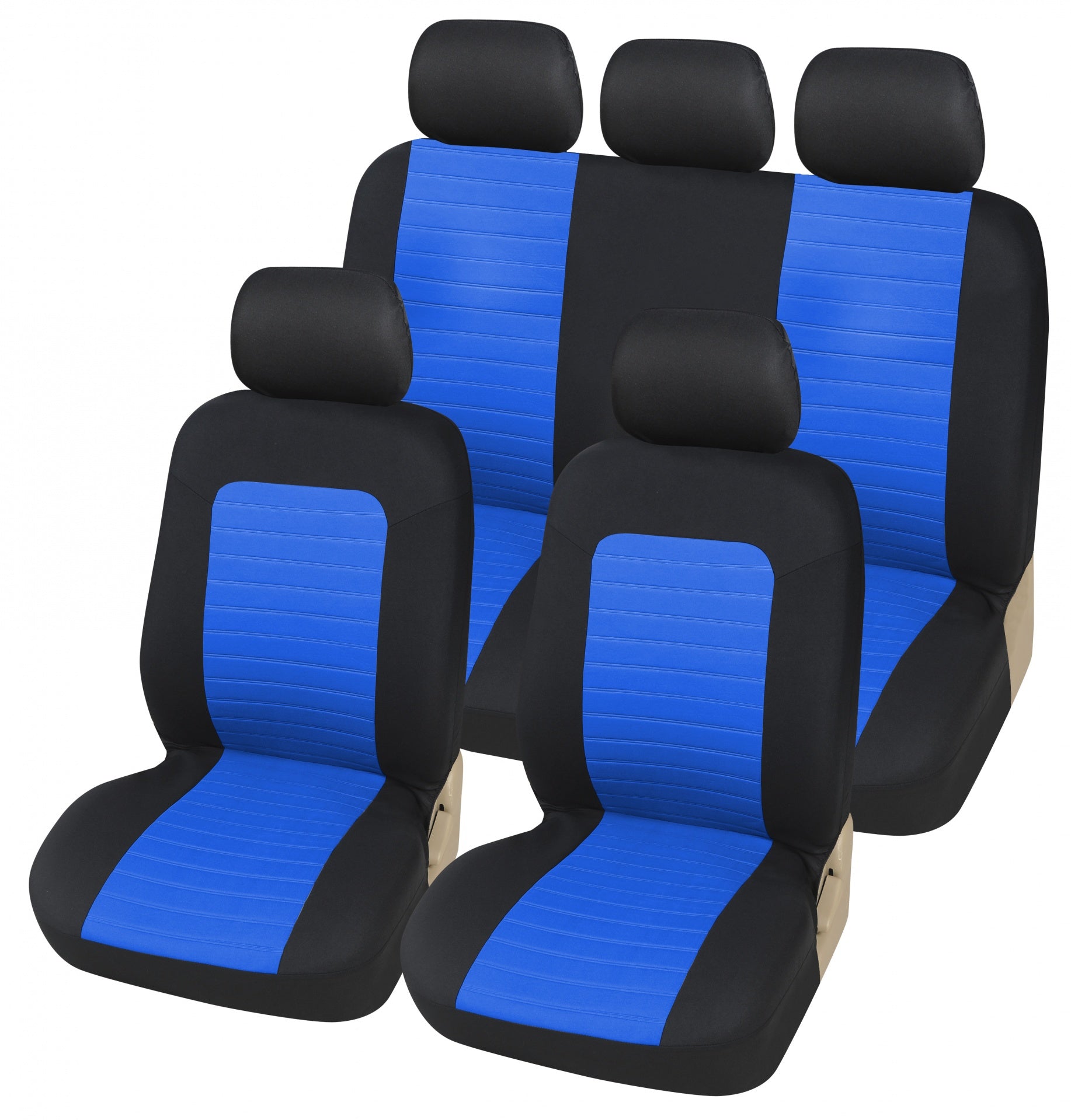 Универсална Авто тапицерия Kалъфи За Седалки Пълен Комплект 9 Части Черно Синьо