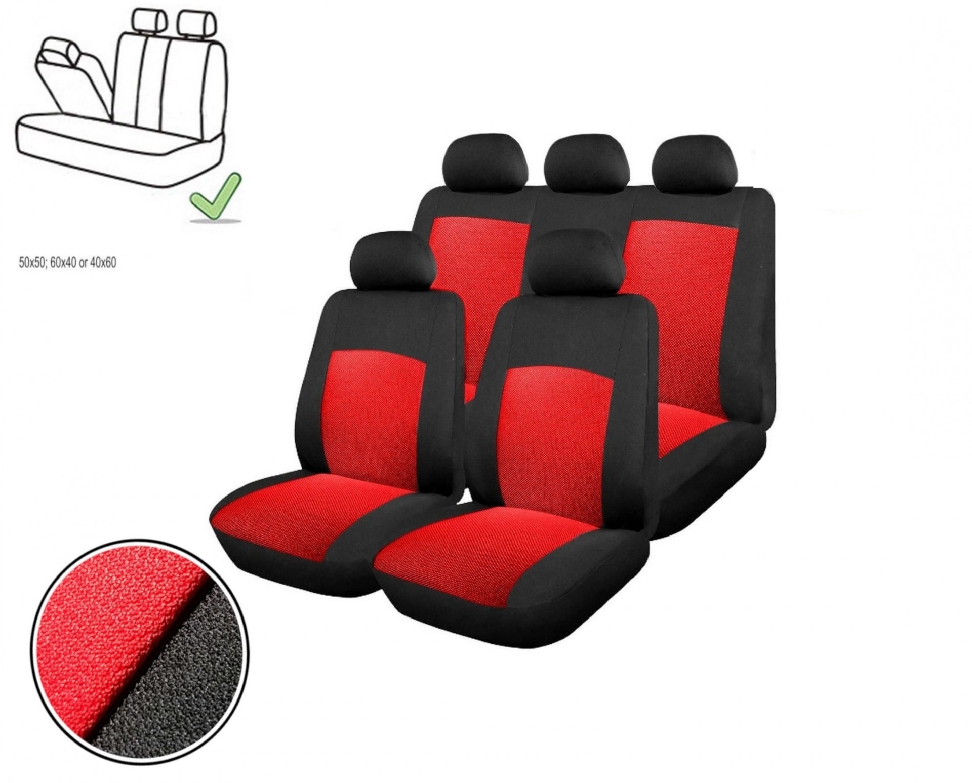 Универсална Авто тапицерия, калъфи за седалки, пълен комплект делима задна седалка с цип червена