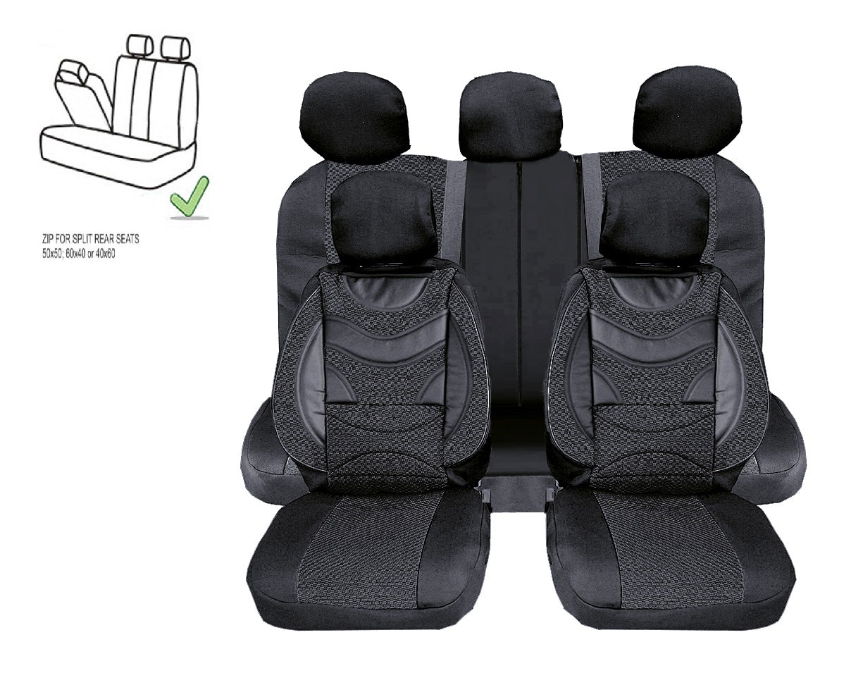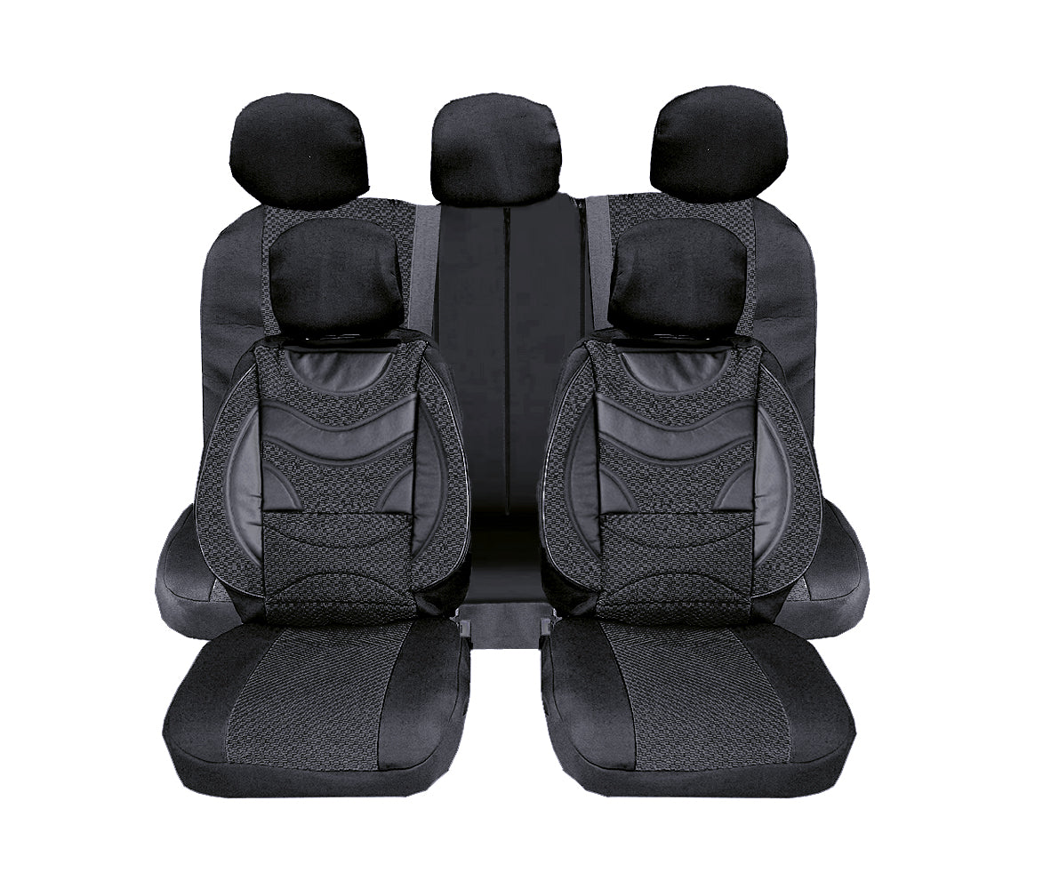 Универсална Авто Тапицерия, Пълен Комплект, Premium, Еко Кожа и Текстил, Черна, Делима Задна Седалка, 9 части