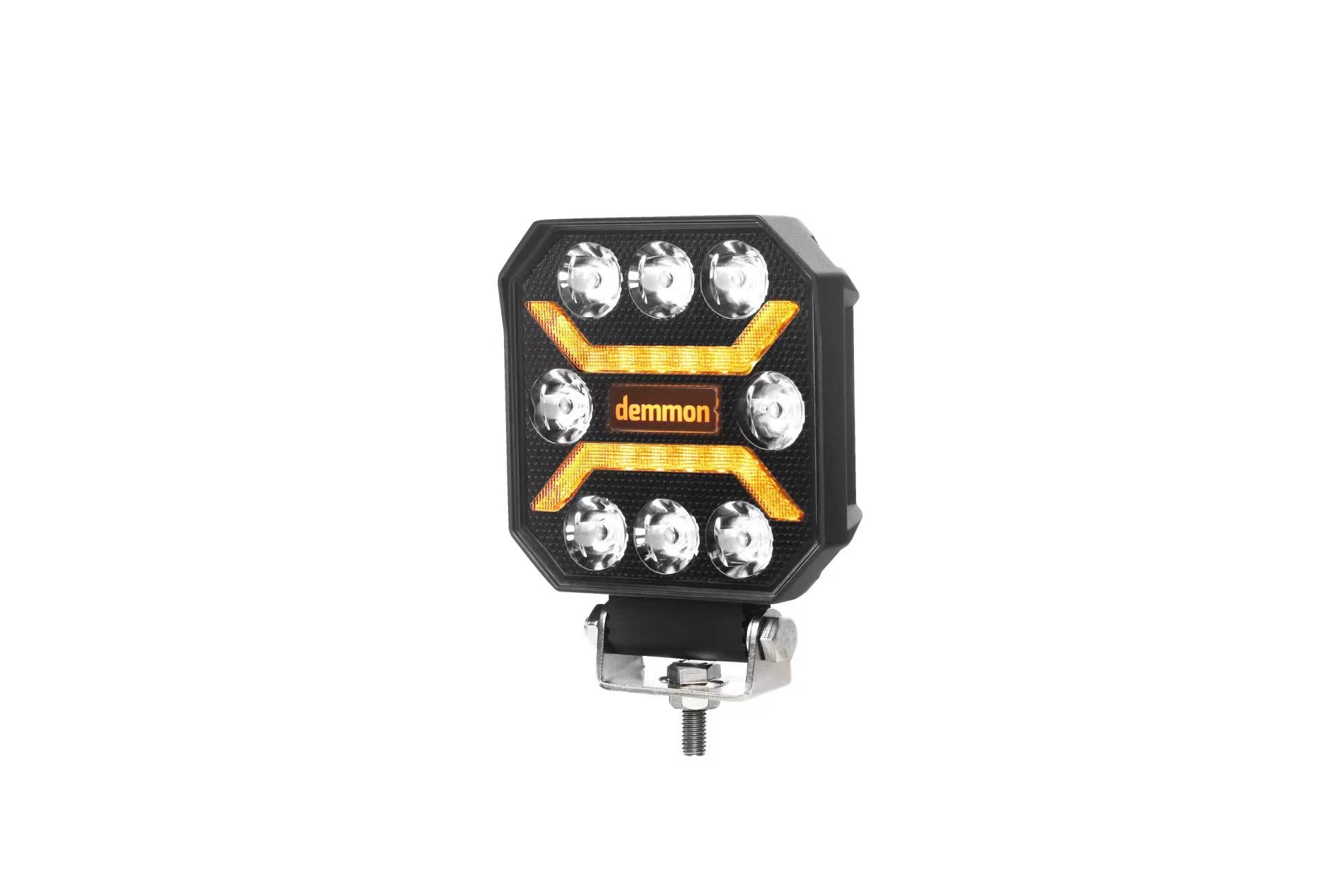 Универсална мощна LED диодна лампа халоген бяла и жълта оранжева светлина 27W 12V - 24V за камион трактор ролбар АТВ джип земеделски и селскостопански машини и др. 110 x 110 x 37 mm E-mark E9