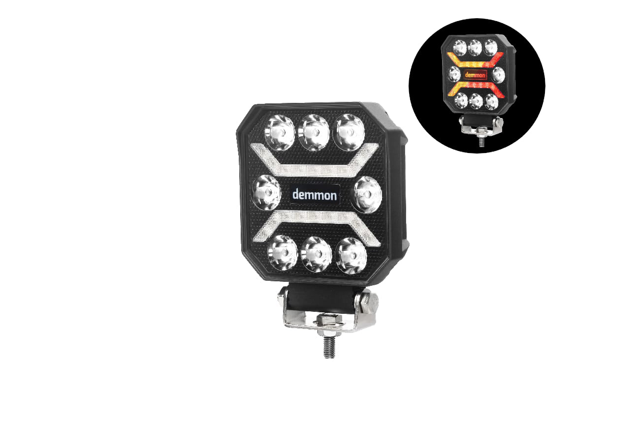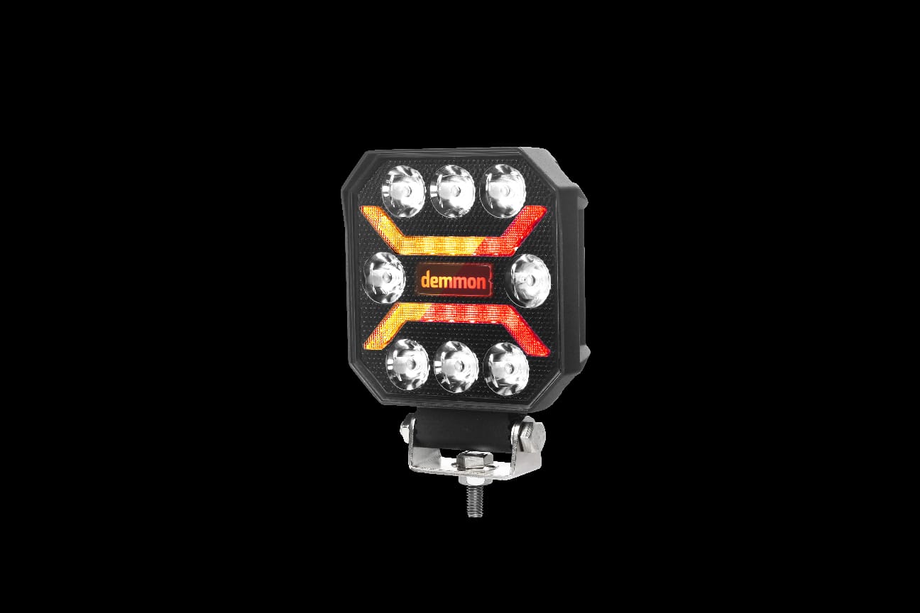 Универсална мощна LED ЛЕД диодна лампа халоген с 3 светлини бяла - жълта - червена светлина 27W 12V - 24V за камион трактор ролбар АТВ джип земеделски и селскостопански машини и др. 110 x 110 x 37 mm E-mark E9 Устойчива на вода IP67 , удари и вибрации. Алуминиево тяло за по-добра устойчивост от нагряване. Метални скоби за монтиране. Над 30000 часа живот. Насочена Бяла светлина + Жълта ( Оранжева) + Червена Работна температура от -40 до +85. Подходяща за 12V и 24V Мощност: 27W LED: 8 + 32 Захранване - 9-32V DC Размери : 110 x 110 x 37 mm E-mark ECE R148 R10 E9