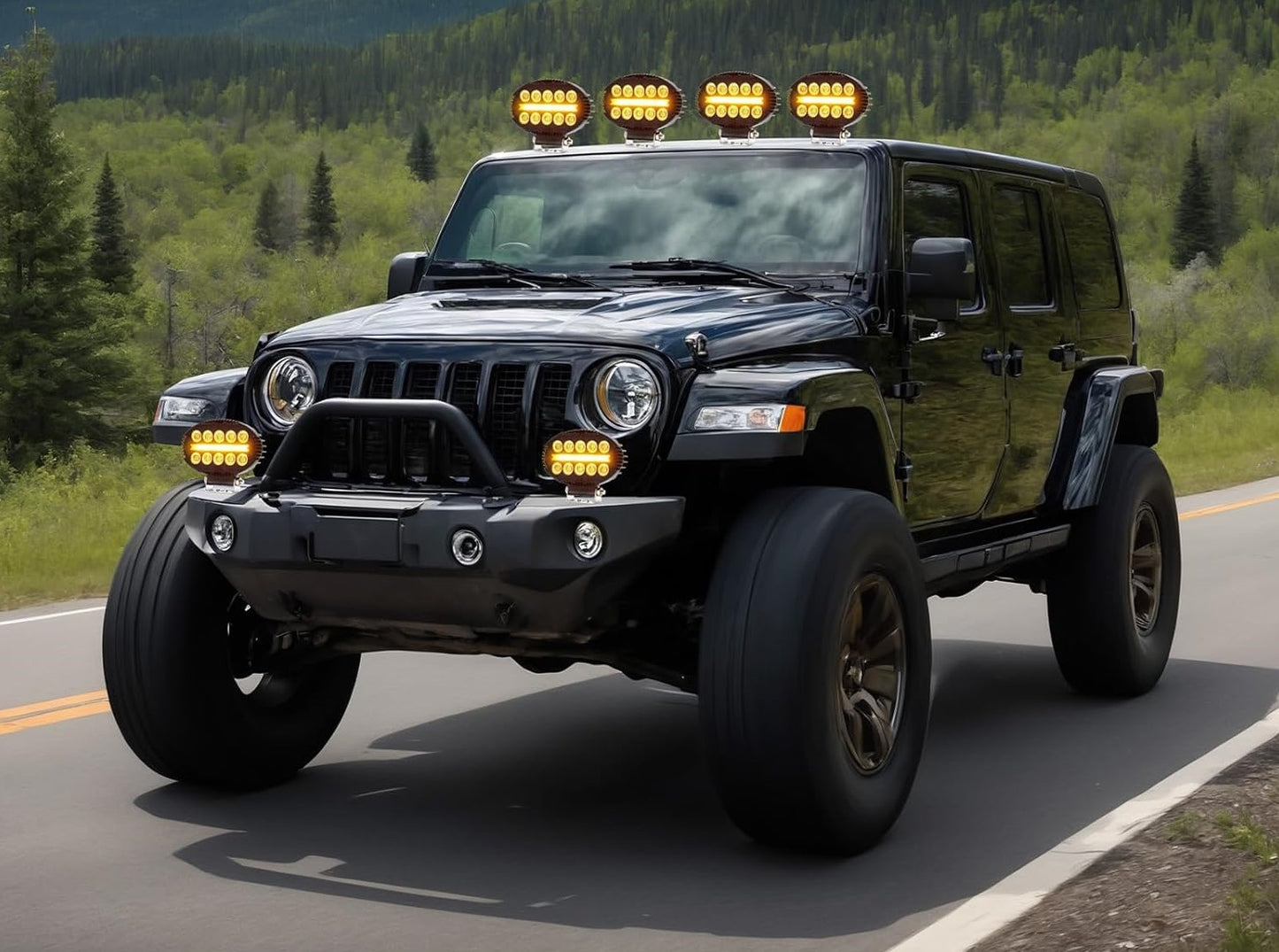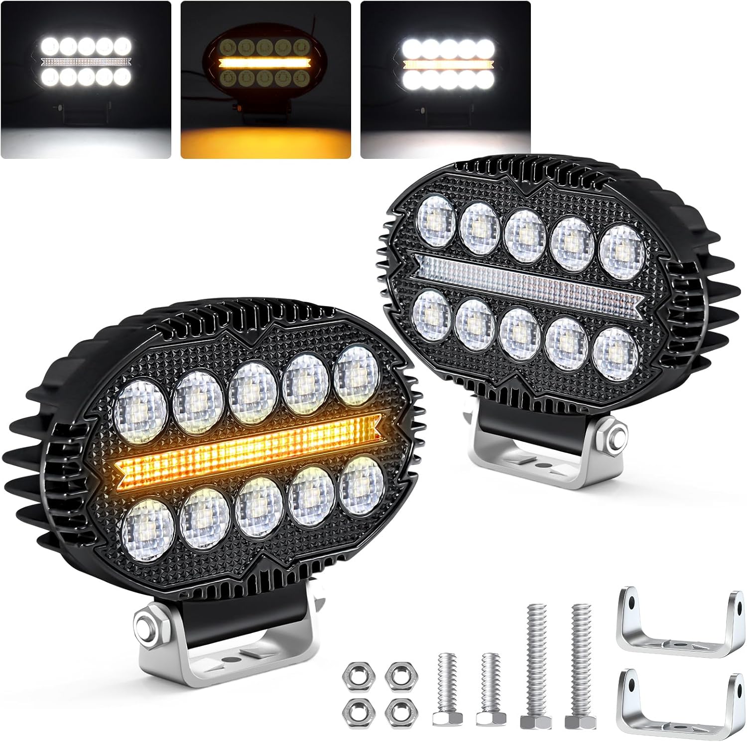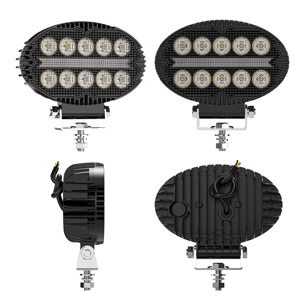 Универсална мощна LED ЛЕД диодна лампа халоген фар с бяла светлина и DRL жълта светлина за камион трактор ролбар оффроуд АТВ джип земеделски и селскостопански машини и др.