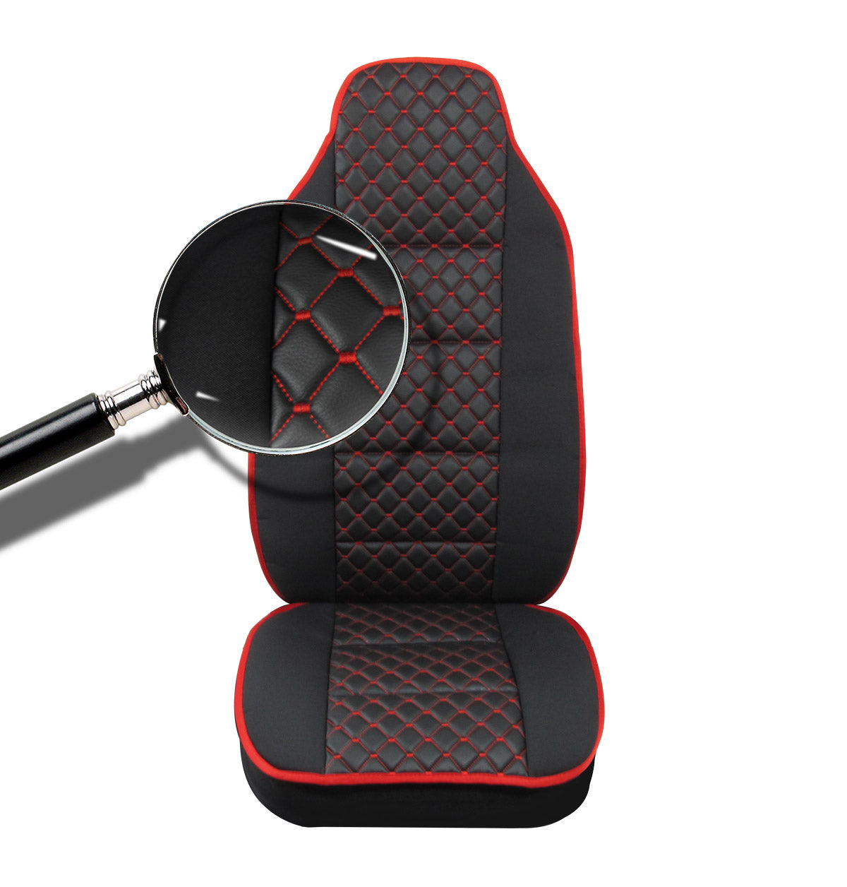 Удобна за използване, изработена от текстил и еко кожа, подходяща за повечето модели товарни автомобили: Защитава седалките на тежкотоварните автомобили, като запазва оригиналната тапицерия от замърсяване и износване - създава комфортна атмосфера - изработена от висококачествени материали - 1 калъф за седалка - цвят: Черно - Червен
