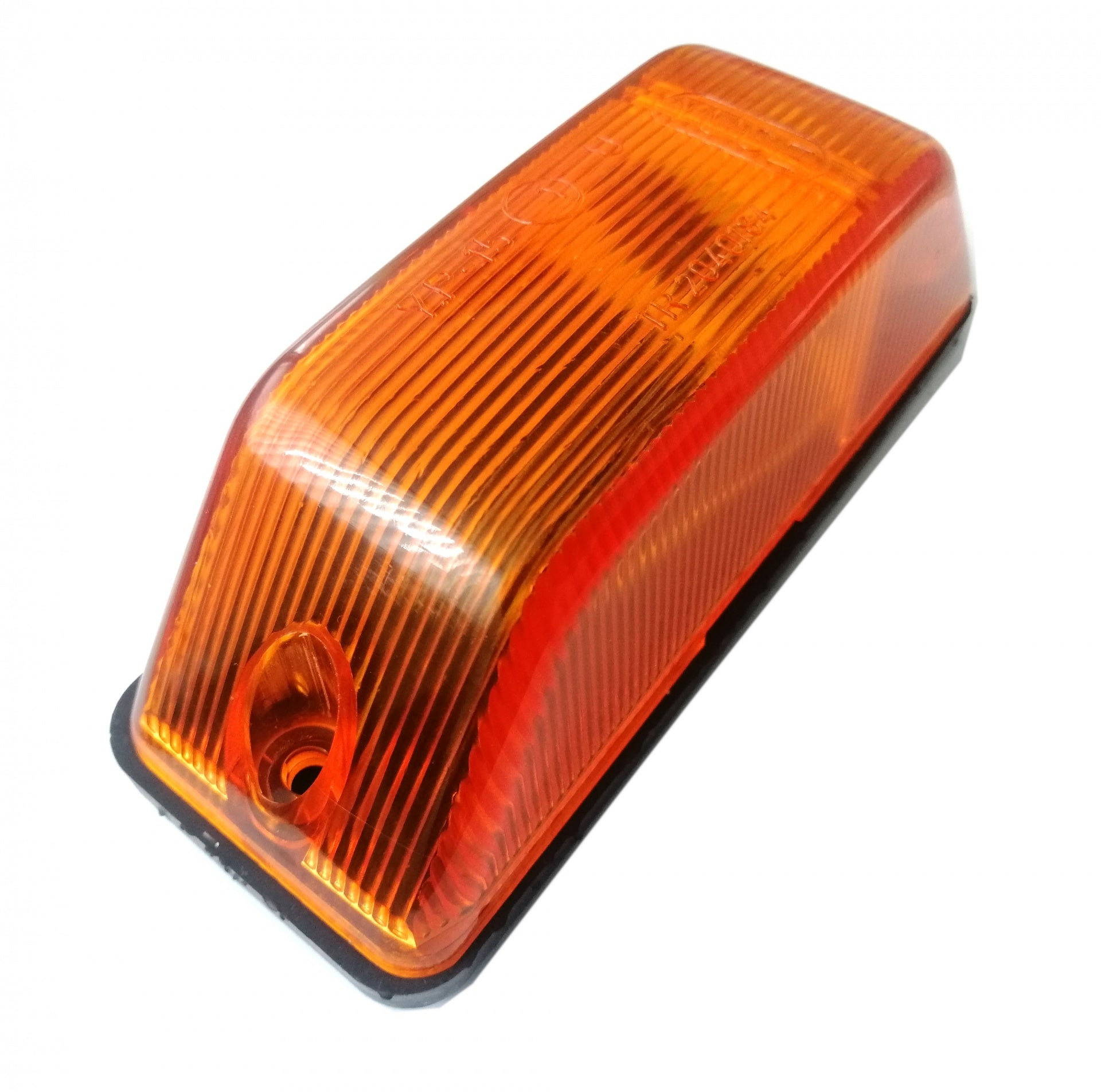 Универсална жълта оранжева сигнална лампа мигач габарит 14 х 5,5 cm 12V - 24V Подходяща за всички камиони, товарни ремаркета, платформи за лодки и мотоциклети, селскостопански машини, каравани, строителна техника и др. Работно напрежение: 12-24V Цвят: жълт/оранжев Няма включени крушки към лампата Размери: 14 х 5,5 х 5,3 cm Разстояние между монтажните отвори : 12 cm