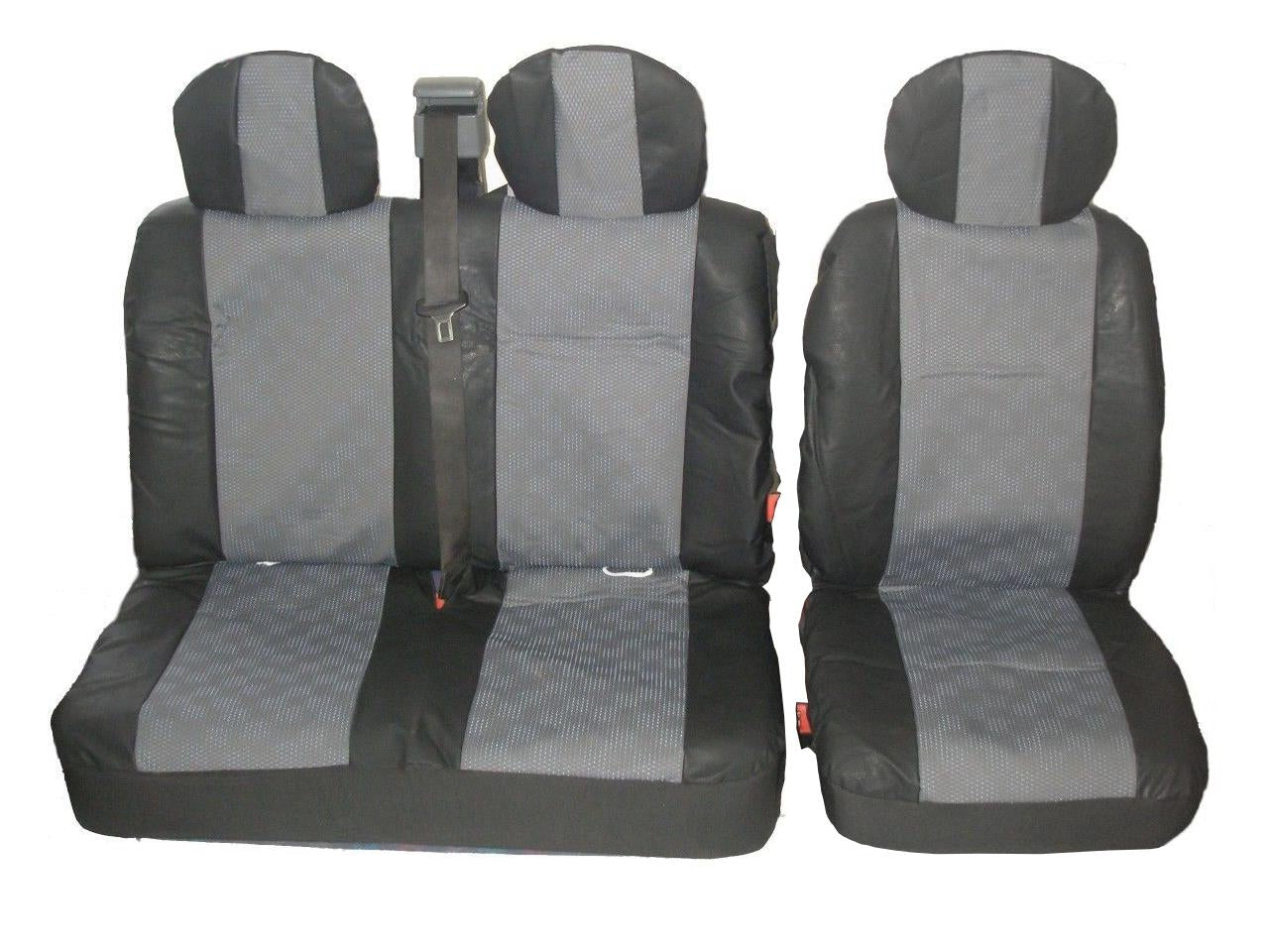 Удобни за използване. Протекторите за седалки за кола защитават седалките на вашия автомобил, като запазват оригиналната тапицерия от замърсяване и износване. Създават комфортна атмосфера във вашия автомобил. Изработени са от различни високо качествени материали. Подарете си удоволствие и стил. Характеристики: - двойно подплатен висококачествен дишащ текстил - лукс - съобразени така че да имате свободен достъп до колани, подлакътници, подглавници. Калъфът за пътниците покрива предната част на седалката - материал: висококачествен текстил и еко кожа - машинно пране на 40 градуса - цвят: сиво с черно Пакетът включва: - 2 калъфа - 1 за водача и 1 двоен за пътническо място - 3 подглавника