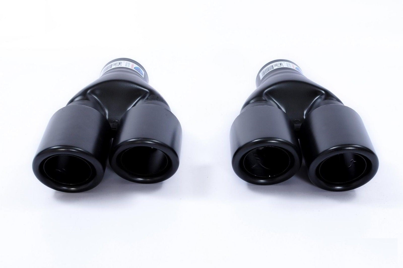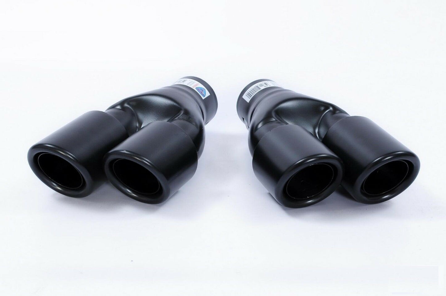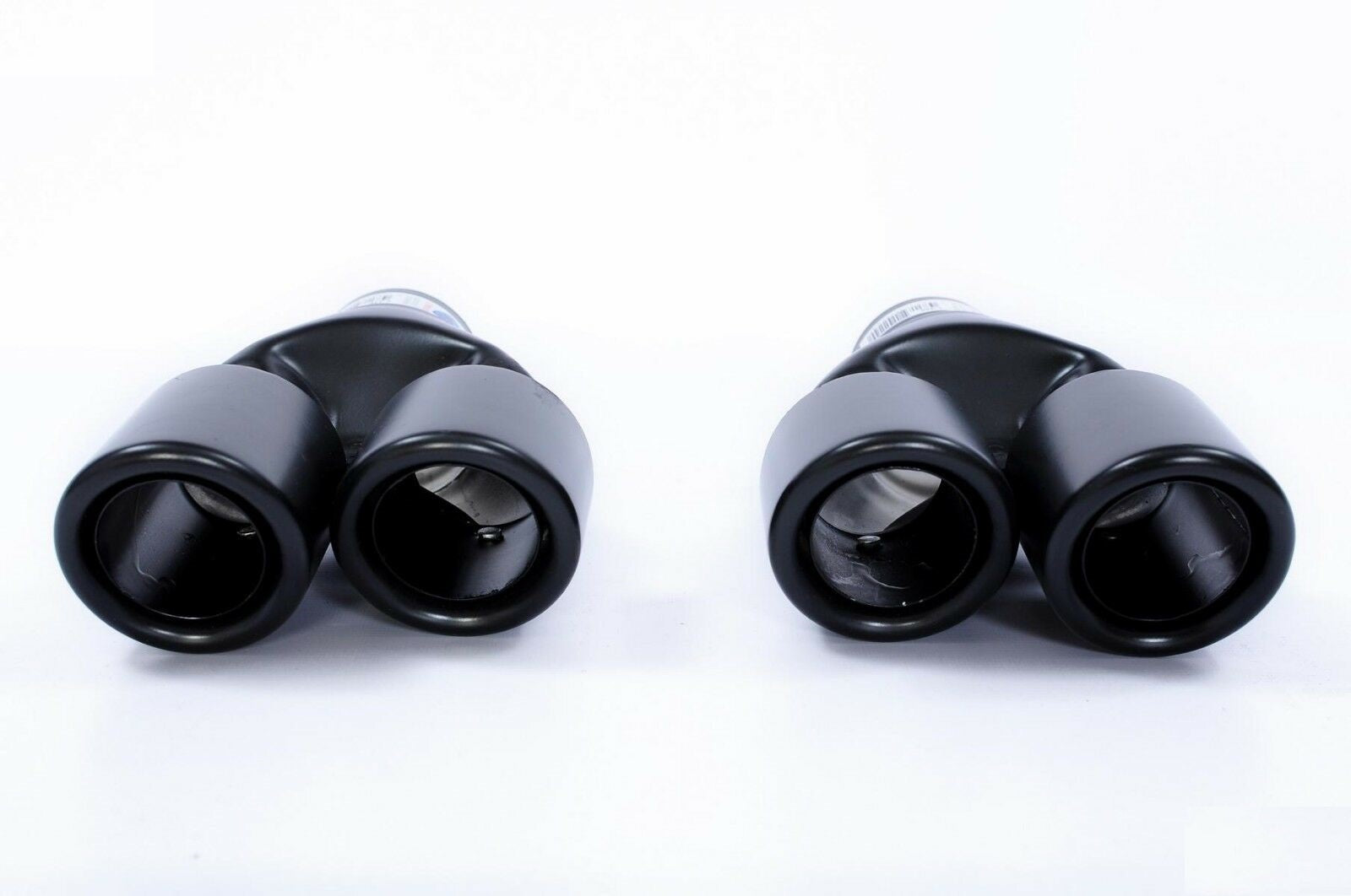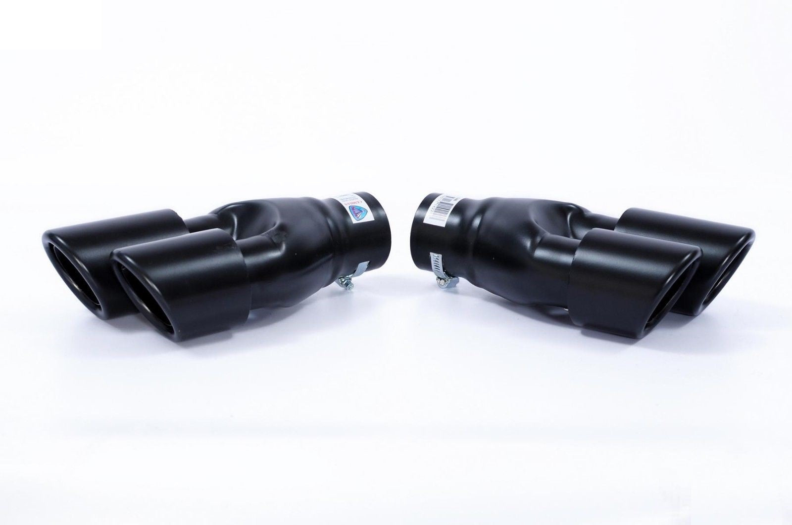Ляв и Десен Универсални накрайници за ауспух на автомобил , Черен мат. Лесни за инсталация фиксираща скоба. Неръждаеми ! Дължина: 26см Вход: 6.5см, регулируема клапа (3.8 - 6.5см) Моля проверете за съответствие на размерите с вашия автомобил. AUS051+AUS052