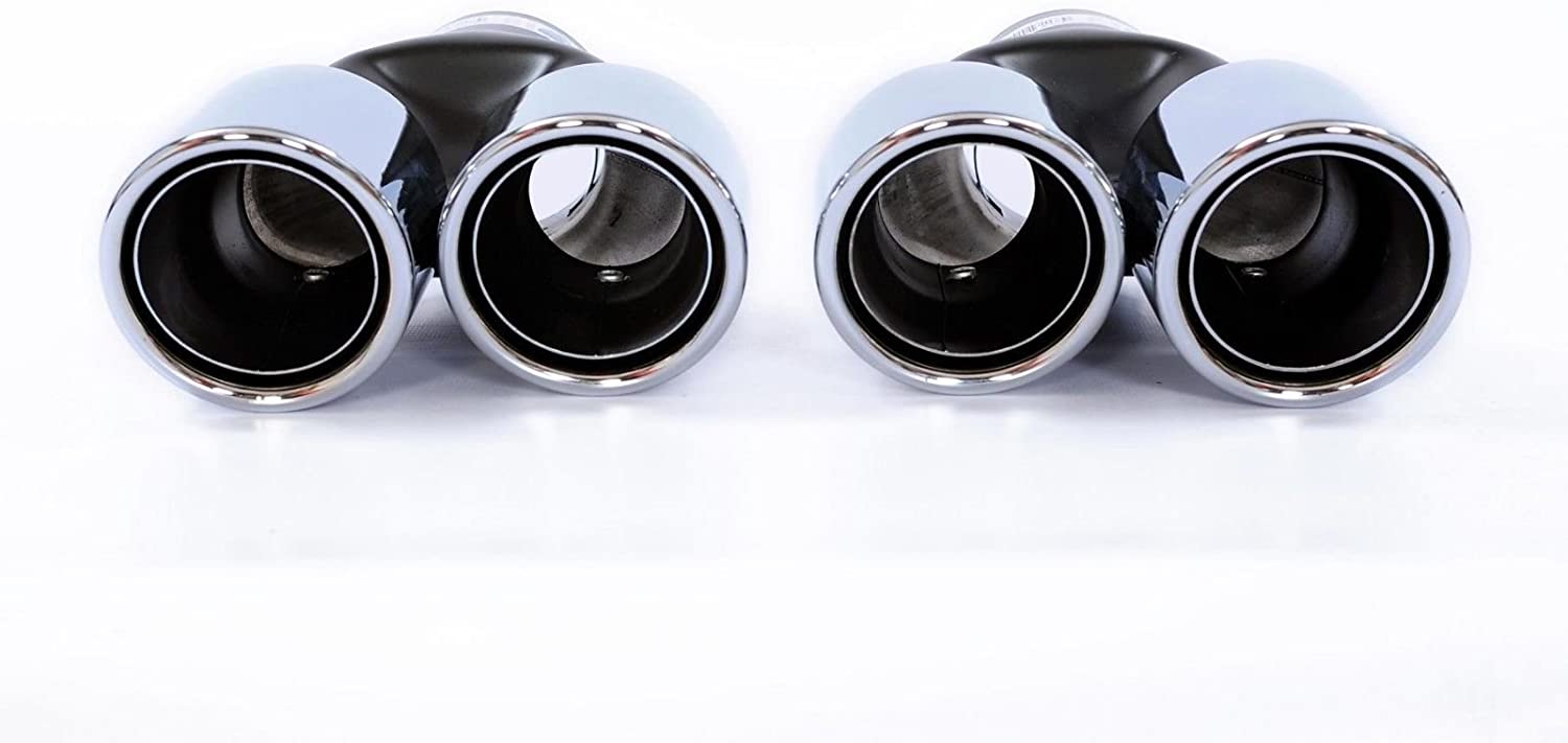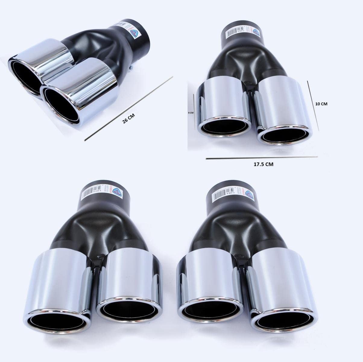 ЛЯВ + ДЕСЕН УНИВЕРСАЛНИ ХРОМИРАНИ ВИСОКОКАЧЕСТВЕНИ ДВОЙНИ НАКРАЙНИЦИ ЗА АУСПУХ ЗА АВТОМОБИЛ ЛЕСЕН МОНТАЖ !!! НЕРЪЖДАЕМА СТОМАНА РАЗМЕРИ: ОБЩА ДЪЛЖИНА- 26 CM ВХОД 7,5 CM. (МИН. ДИАМЕТЪР 5.8 CM, МАКС. ДИАМЕТЪР 7,5 СМ) ИЗХОД 17,5 Моля проверете за съответствие на размерите с вашия автомобил.