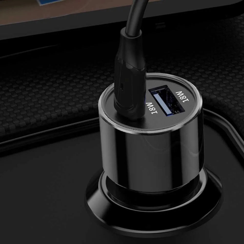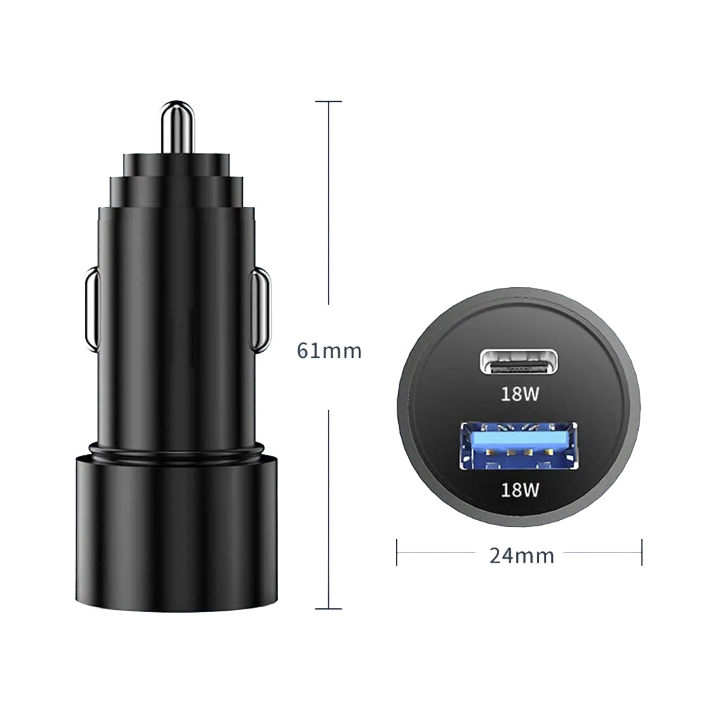 Универсално USB УСБ Зарядно За Автомобил, Бус, Джип, Камион и Др. Метален корпус устойчив на високи температури Възможност за зареждане на две устройства едновременно Два порта: 1. USB 5V - 3A , 9V - 2A, 12V - 1.5A 2. Type C 5V - 3A , 9V - 2A, 12V - 1.5A Обща мощност на двата порта - 36W (2x 18W) DC 12V/24V Сребрист цвят Синя LED Светлина Бързо Зареждане