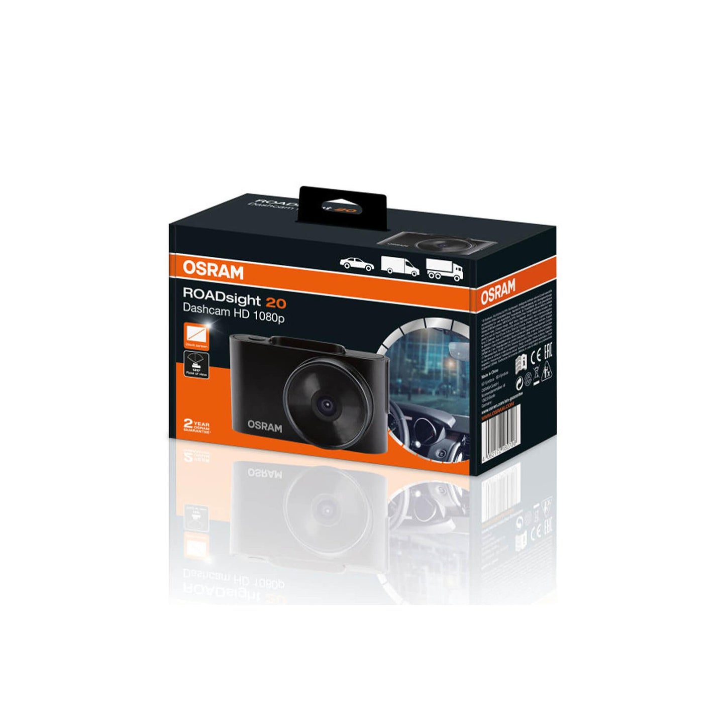 Видеорегистратор OSRAM ROADsight 20 предлага спокойствие, докато шофирате колата си. С пълна разделителна способност 1080p, 30fps и 120-градусов обектив, получавате FULL HD кадри на регистрационни табели и пътни знаци. 2-инчовият екран ви позволява да възпроизвеждате кадри, както и прави камерата компактна и дискретна, за да не ви разсейва по време на шофиране.