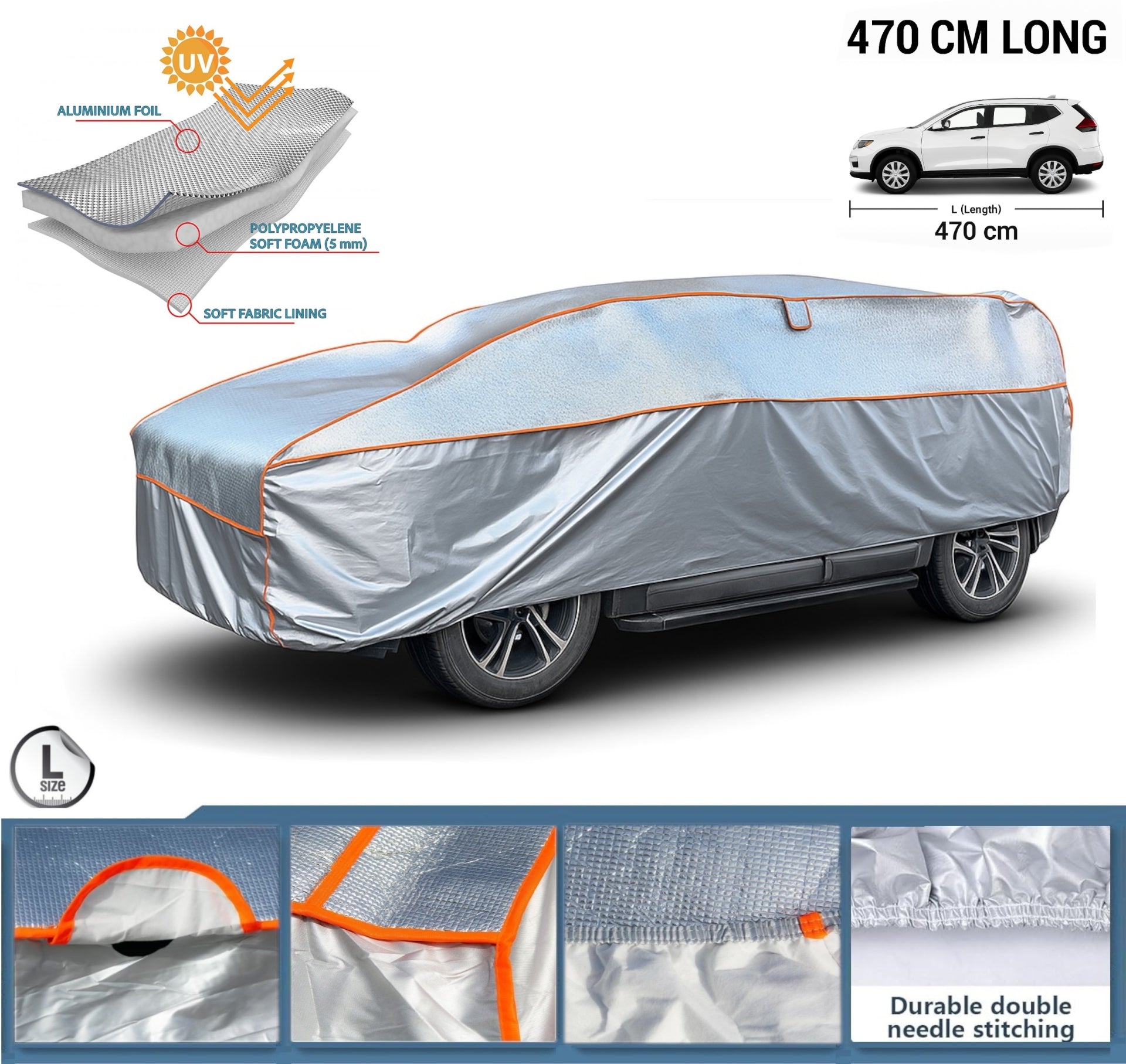 Висококачествено Покривало непромокаемо с алуминиево покритие против градушка за автомобил, Джип, SUV размер L – 470 см